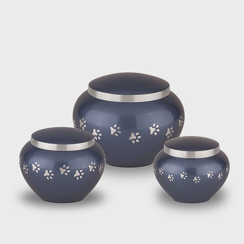 The Grey Brass Odyssey Pet Funeral Urn for Animal Ashes is the perfect way to honor your beloved pet. Made of high-quality brass, this urn has a modern arts style with a regional touch of Indian design. The urn comes in four different sizes - 10, 8, 6, and 3 - to accommodate any size of pet ashes. The urns finishing is done through polishing, giving it a smooth and shiny surface. This urn is durable and long-lasting, ensuring that your pets ashes are safely stored for years to come.